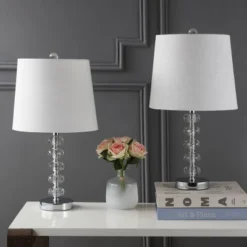 22″ (Set Of 2) Kevin Glass/Metal Table Lamp (Includes LED Light Bulb) Clear/Chrome – JONATHAN Y