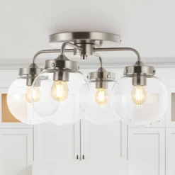 JONATHAN Y Piper 18-Inch 4-Light Farmhouse Rustic Iron and Glass LED Semi Flush Mount