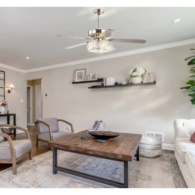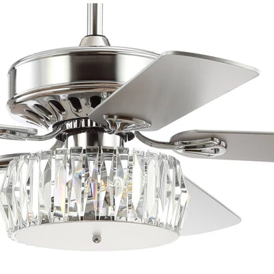 Elevate your interior design with the Jonathan Y 52-inch Crystal Prism Drum Ceiling Fan. This sophisticated fixture blends high-end lighting with powerful climate control, featuring a stunning chrome-finished drum embellished with authentic crystal prisms. Whether you are refreshing a master suite or adding a focal point to your living room, this fan delivers a sparkling, luxury aesthetic that complements modern and contemporary decor styles.