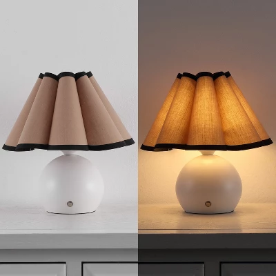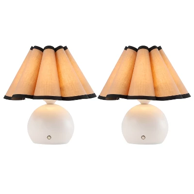 Elevate your interior design with the JONATHAN Y Billie collection, where classic vintage charm meets modern cordless convenience. This sophisticated pair of accent lamps features a stunning scalloped linen shade accented by bold tape trim, offering a timeless aesthetic that complements bedrooms, living rooms, and dining spaces alike. Designed with durability in mind, these lamps are crafted from high-quality metal and powered by integrated LED technology, providing efficient and adjustable lighting wherever you need it most.