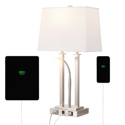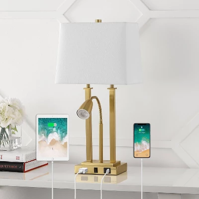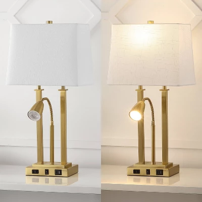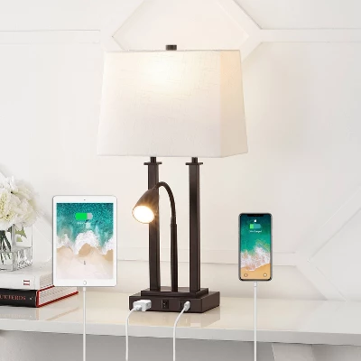 The JONATHAN Y Blaire table lamp seamlessly blends sophisticated modern aesthetics with functional innovation. Designed with a dual-light system, this piece features a traditional ambient lamp paired with a high-performance adjustable reading light. Whether you are illuminating a bedside retreat or a professional workspace, the integrated USB charging port ensures your devices remain powered while the elegant linen shade casts a warm, inviting glow.