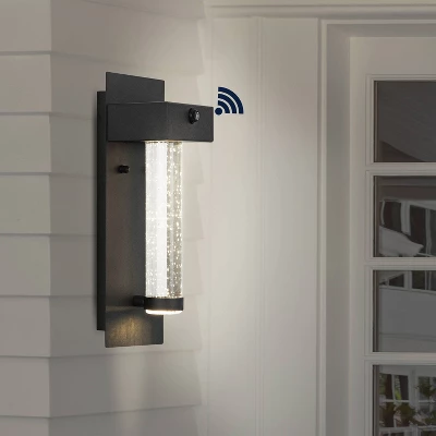 Elevate your home’s exterior with the JONATHAN Y Horizone collection, where mid-century sophistication meets cutting-edge smart technology. This minimalist outdoor sconce is designed to provide both high-end style and effortless functionality, featuring a sleek black metal frame that perfectly cradles a premium seeded crystal shade for a timeless, textured glow.