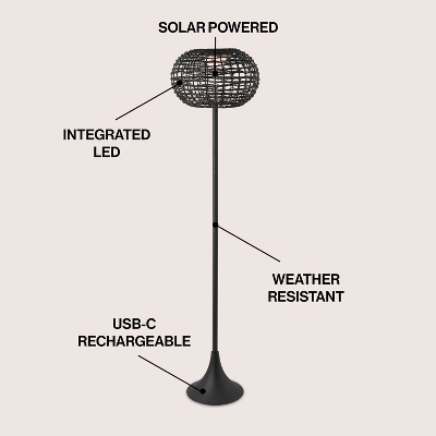 Transform your patio, deck, or porch into a sophisticated retreat with the JONATHAN Y Jaemin Modern Coastal Floor Lamp. Combining the organic texture of woven faux rattan with a sleek industrial metal base, this versatile fixture brings indoor elegance to your outdoor living spaces. Designed to withstand the elements, it offers a warm, inviting glow that enhances your home’s exterior aesthetic from sunset to sunrise.