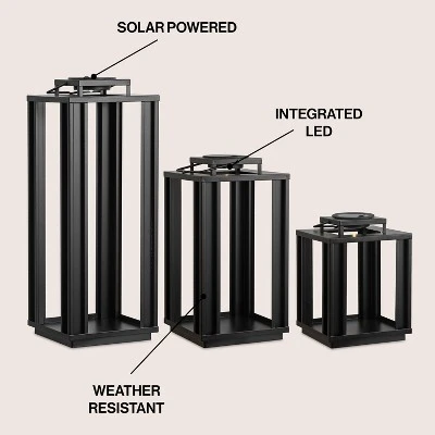Elevate your landscape with the JONATHAN Y Leland Modern Industrial Solar Lanterns. This set of three lanterns combines sophisticated architectural design with eco-friendly technology, offering a seamless way to illuminate your garden, pathways, or patio without the need for complex wiring.