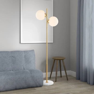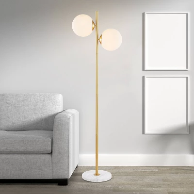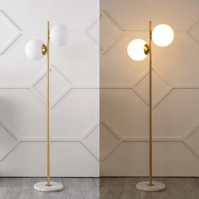 Elevate your interior design with the JONATHAN Y Oscar Floor Lamp, a sophisticated piece that captures the essence of vintage Parisian bistro charm. Standing at a graceful 60.5 inches, this candlestick-style lamp blends Art Deco inspiration with minimalist modern lines, creating a versatile lighting solution that complements everything from contemporary offices to classic bedrooms. The warm brass-gold finish is paired with frosted glass globes to provide a soft, welcoming glow that transforms any space into a high-end sanctuary.