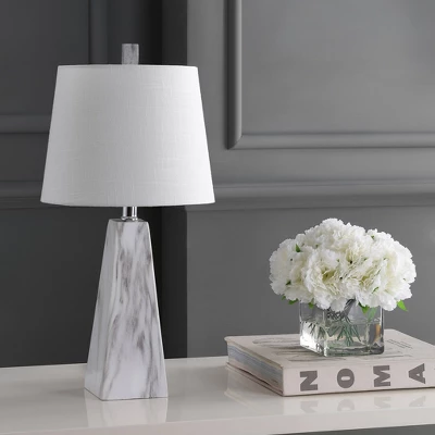 Elevate your interior aesthetic with the JONATHAN Y Owen Table Lamp, a masterpiece that blends neoclassical elegance with modern geometric flair. Designed to make a sophisticated statement, this lamp offers the timeless look of marble paired with a contemporary faceted silhouette, ensuring a perfect fit for any upscale living space.