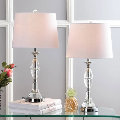 - Versatile Styling: The neutral clear crystal and white shade palette ensures these lamps integrate perfectly with any existing decor or color scheme.
