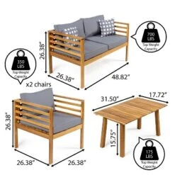 JONATHAN Y Everly 4-Piece Modern Cottage Acacia Wood Outdoor Patio Set