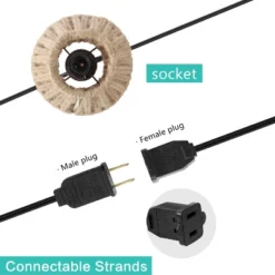 JONATHAN Y Samara 10′ 10-Light Hemp Rope Shaded String Lights